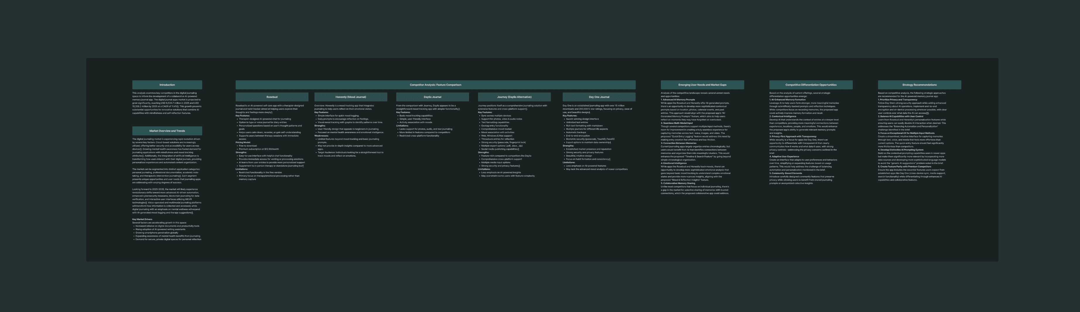 I broke down the brief to understand what was actually being asked. Then I did light research on journaling behavior and AI-powered apps to get context for the problem space.